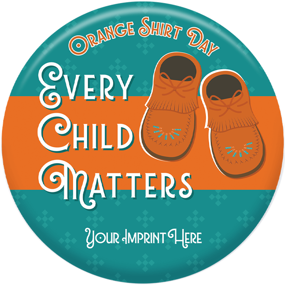 These are classic steel buttons with standard pin backs. Choose from our exclusively designed templates to show your support for orange shirt day. Your one-color imprint is included on the button. These buttons are made in the USA!